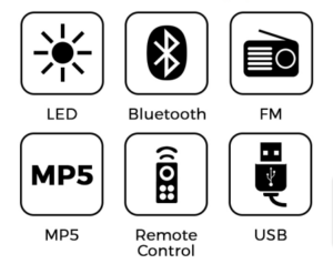 * Support : FM/BT/Aux/USB/ SD Card Reader